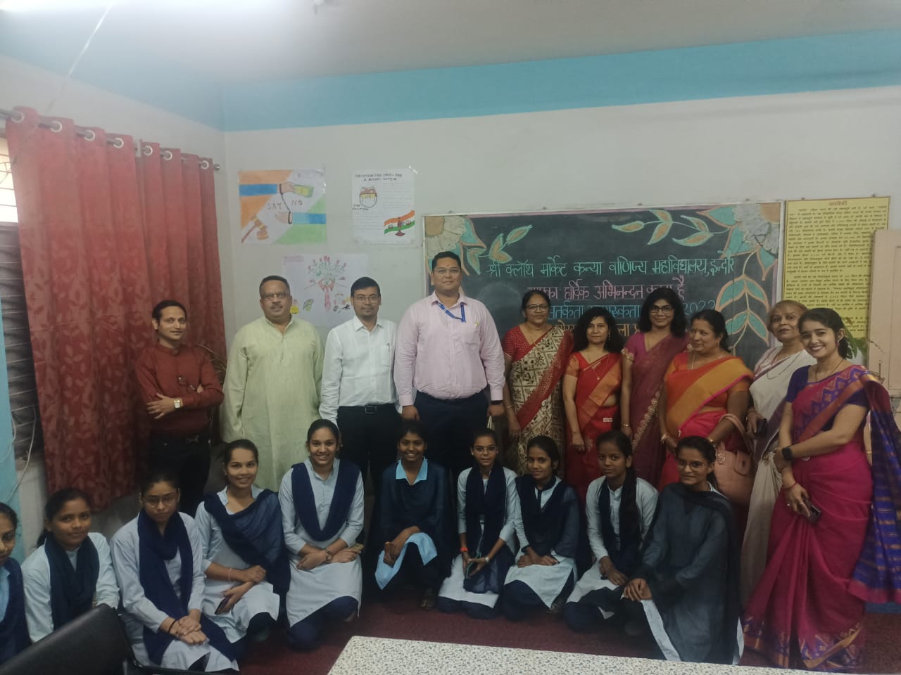 On November 4th, 2022, a Poster and Art Competition on “Corruption-Free India for a Developed Nation” was organized by the Employees’ Provident Fund Organization (Ministry of Labor and Employment, Government of India) at Shri Cloth Market Girls Commerce College, Indore. The competition was held as part of the Vigilance Awareness Week 2022. The event was attended by Mr. Manas Mishra, Enforcement Officer, and Mr. Priyesh Jain, Enforcement Officer of the Employees’ Provident Fund Organization. More than 100 students of the college participated in the competition. The winners were awarded cash prizes of INR 2500, INR 1500, and INR 1000 respectively. In this competition, Ms. Prashiti Shivare, Ms. Rashi Soni, and Ms. Supriya Pavankar secured first, second, and third positions respectively.